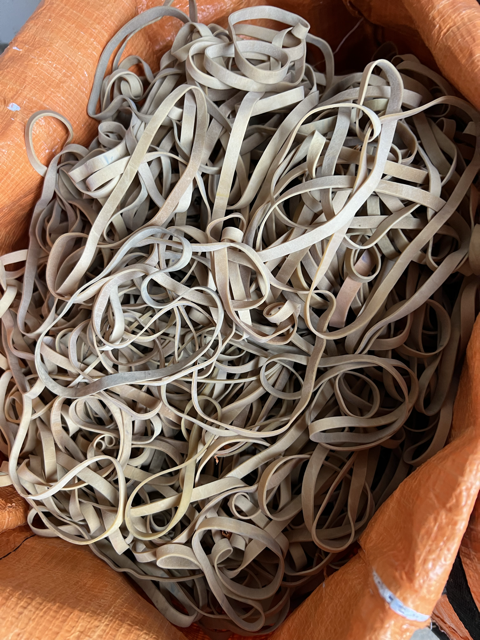 That’s awful, I thought, knowing well what I carried: an entire route’s worth of elastics - spent, and tangled at the bottom of my bags, having served their purpose wrapping the hundreds of pounds of mail I had just delivered. Tiny culprits, all of them. If not directly responsible for any harms done, yet, they were all at least guilty as a reminder; a potentiality.