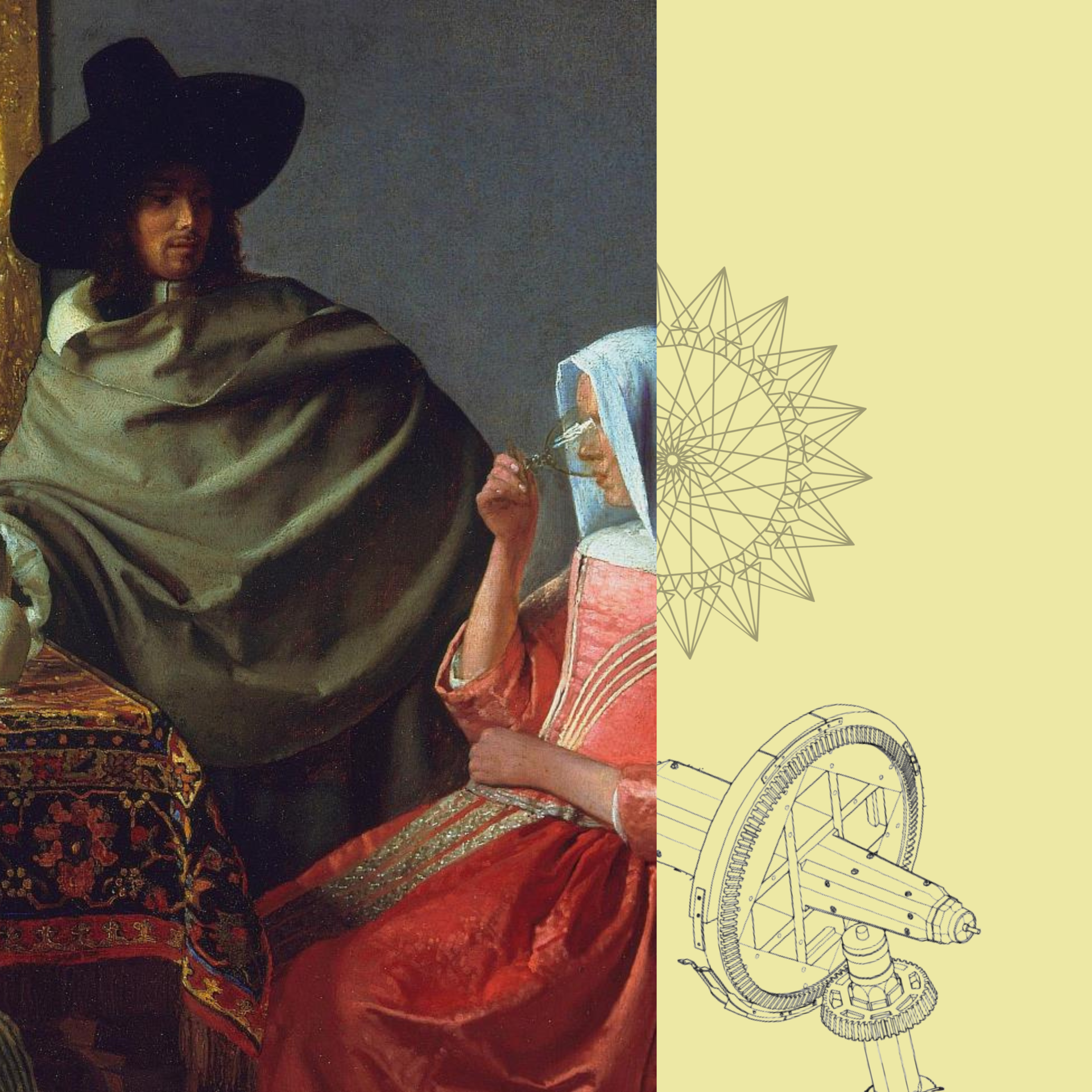Collage of Vermeer’s “The Wine Glass” with spirograph and windmill gears